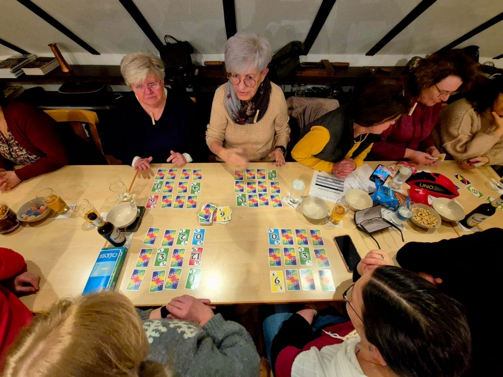 Der erste Spieleabend am vergangenen Mittwoch war ein voller Erfolg. Zahlreiche Teilnehmerinnen und Teilnehmer aus nah und fern folgten der Einladung und sorgten für eine lebendige und gesellige Atmosphäre im Öalcher Backes. Es wurde eine große Vielfalt an Brett- und Kartenspielen angeboten, die von den Anwesenden mit viel Begeisterung genutzt wurde. Der Abend bot Gelegenheit zum Austausch, gemeinsamen Spielen und Kennenlernen und wurde von allen Beteiligten sehr positiv aufgenommen.